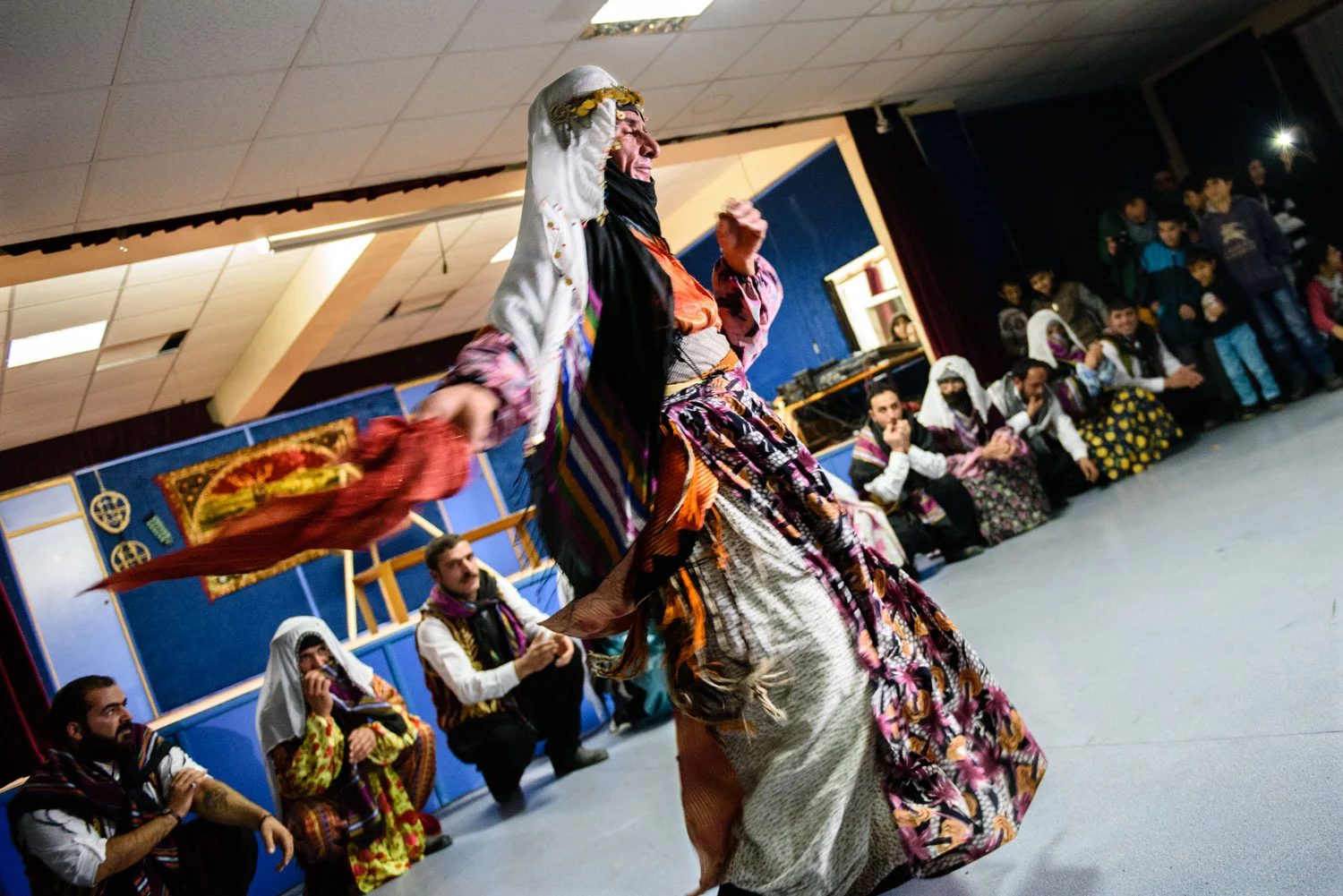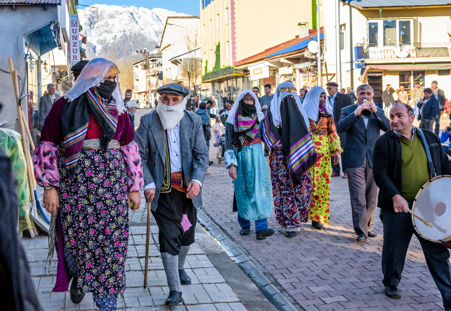 The centerpiece of the festival is a procession called Khalkek, in which several men dress up in costume and parade around their town or village. One of the performers, representing the outgoing Sultan, wears a white beard and carries a cane, or other accessories of old age. Another performer, representing the world itself, is made up as a beautiful woman. A third performer, representing the incoming Sultan, is dressed as a young man with a blackened face – it is said that his face is dark because his star has only just begun to rise in the world of ‘batın’ (the inner, spiritual world), and its light is not yet able to be cast into the outer world (that will have to wait until March, at which time he will actually claim his throne)
