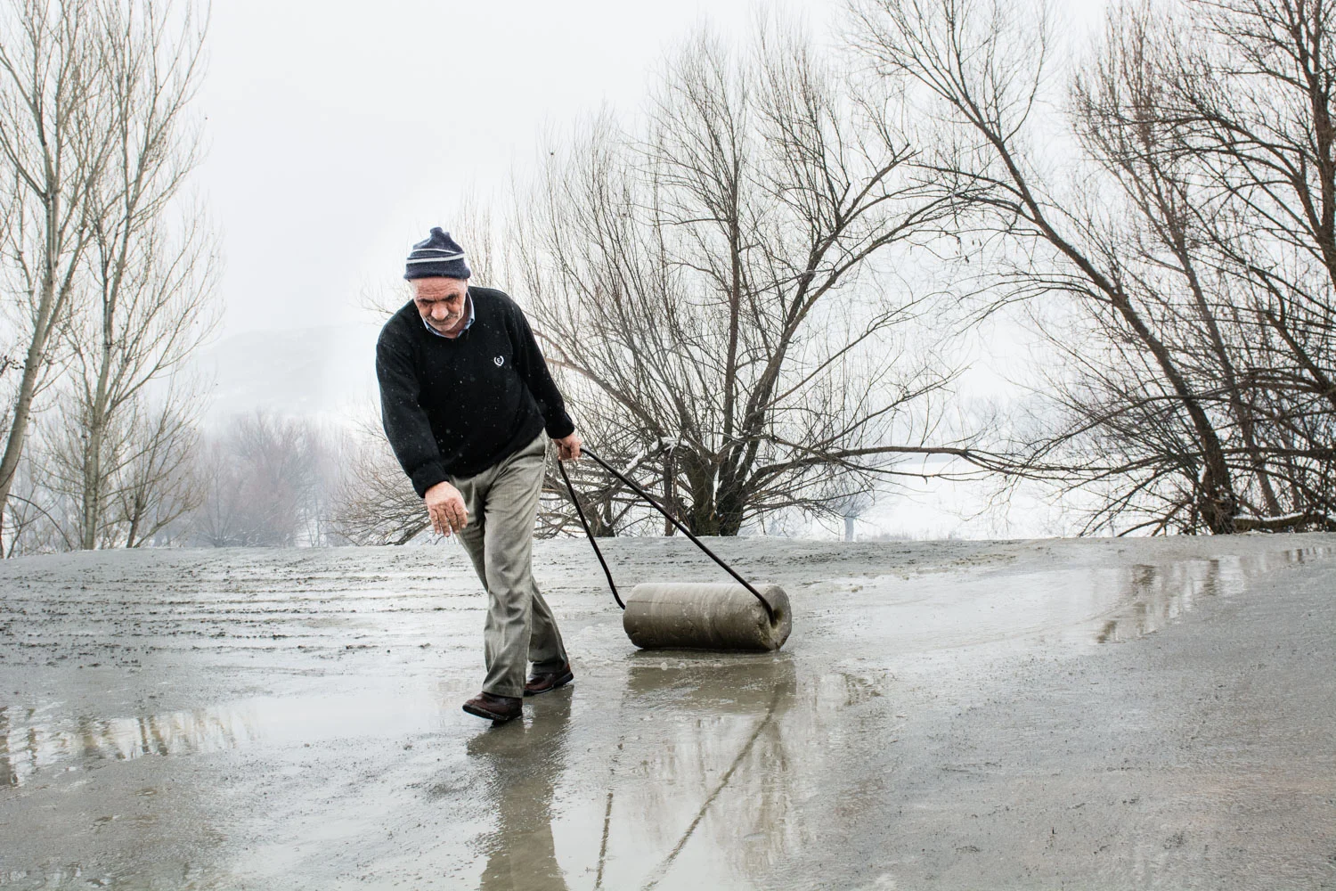 Traditional homes in the Munzur Valley have flat roofs made of packed earth. In order to keep them from leaking, or even collapsing, after a winter storm, the snow must be shoveled off, then a large, heavy stone called a loğ is rolled back and forth across the roof. This compresses the dirt and helps it maintain its integrity.