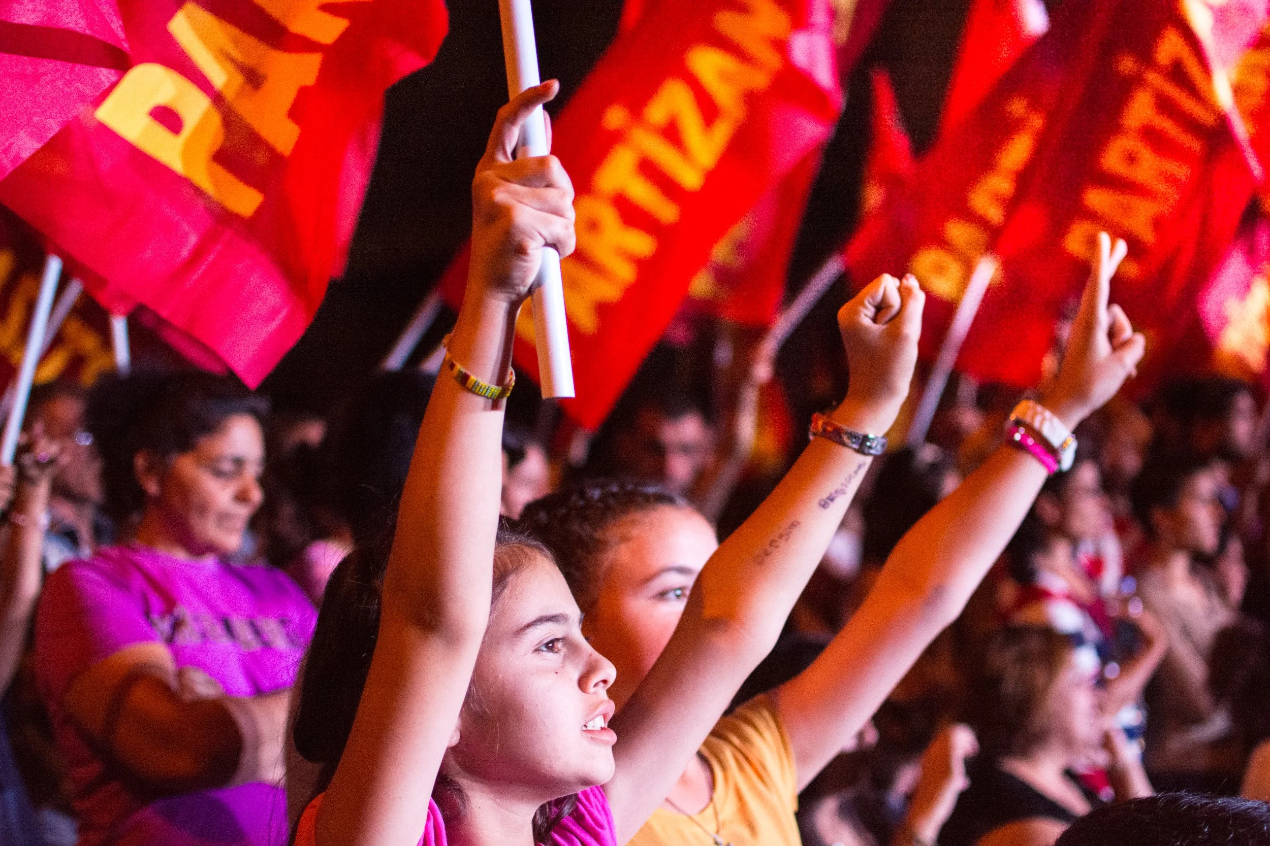 Above: Supporters of Partizan, the current name of the legal political wing of TIKKO, wave flags during a musical performance at the 14th annual Munzur Culture and Nature Festival, in 2014.