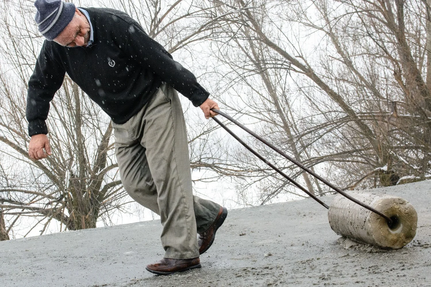 Traditional homes in the Munzur Valley have flat roofs made of packed earth. In order to keep them from leaking, or even collapsing, after a winter storm, the snow must be shoveled off, then a large, heavy stone called a loğ is rolled back and forth across the roof. This compresses the dirt and helps it maintain its integrity.